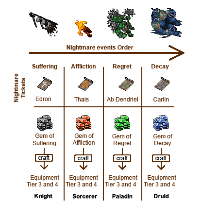 Nightmare are events where you find resources to craft Tier 3 and 4 Equipments.
